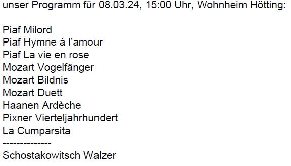 04.04.2025: Konzert Seniorenheim Völs; Beginn: 15:00 Uhr